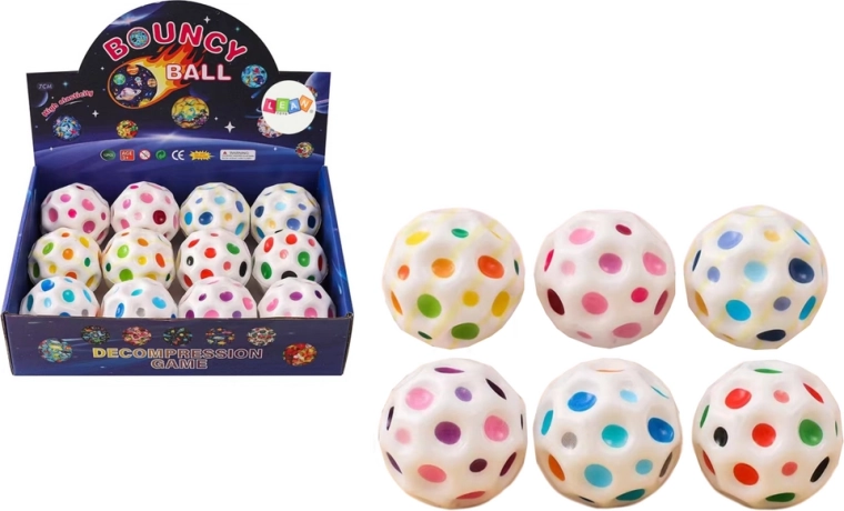 Zábavný kosmický míček v bílé barvě s barevnými prohlubněmi přináší rychlé odrazy, možnost mačkání pro smyslové uklidnění a skvělou zábavu pro děti i dospělé. Díky průměru 7 cm je ideální na doma i ven a podporuje jemnou motoriku a koordinaci.