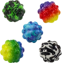 Barevný míček s výstupky o průměru 6,5 cm je skvělá hračka pro děti i dospělé. Díky své textuře se skvěle drží, je vhodný pro skákání, mačkání i sensorickou stimulaci. Různé barvy zaujmou na první pohled a podporují rozvoj jemné motoriky a zrakového vnímání. Ideální na cesty, do školy i domů.