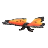 Oranžová křídla s černým lemem a bílými půlkruhovými tečkami napodobují skutečného monarcha afrického pro maximálně realistický dojem.
