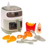 Tento Airfryer je navržen tak, aby podporoval bezpečnost a zábavu vašich dětí. Po nalití vody do horního zásobníku dokáže imitovat páru, což je pro děti zcela bezpečné. Pro realistickou hru je součástí balení i různé doplňky, jako je vidlička, lžíčka, špachtle a plastové napodobeniny potravin.