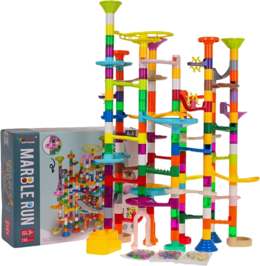 Tato velká a barevná dráha pro kuličky je navržena tak, aby si s ní mohly hrát děti již od 3 let, ale jistě zaujme i starší děti. Hra spočívá ve vlastní stavbě drah a poté sledování, jak se kuličky pohybují spletitými tunely. Můžete se řídit přiloženou obrázkovou instrukcí nebo vytvořit vlastní konstrukci.