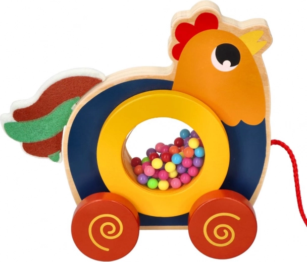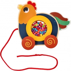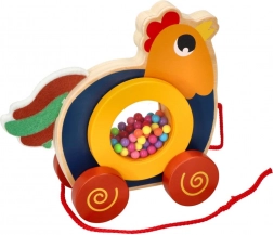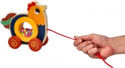 Dopřejte svým dětem radost z pohybu s touto unikátní dřevěnou tahací hračkou ve tvaru kohoutka. Tato hračka nejenom že zaujme svým barevným designem, ale také zlepšuje motorické dovednosti díky jednoduchému mechanismu tahání. Kohoutek je vybaven pestrými barevnými korálky v kruhové části, které vytvářejí zvuk při pohybu, a tak podporují smyslový vývoj dětí. Tahací šňůrka o délce 60 cm umožňuje snadnou manipulaci.
