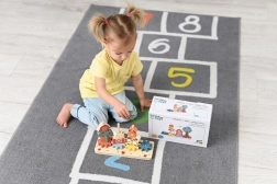 Hračka zahrnuje různé tvary zvířat a stromů, které jsou barevně navrženy, aby přitáhly pozornost dětí a podporovaly jejich smysl pro kreativní hru.