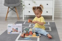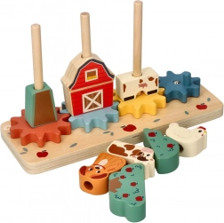 Skládačka 'Bláznivá farma' je navržena tak, aby obohatila hravou fantazii dětí skrze dřevěné prvky malované v živých barvách. Díky skládacím elementům tvaru farmy, stromů a zvířat se děti naučí, jak dílky strategicky umisťovat a změnit výzvy ve hru. Hračka je vybavena ozubenými koly, které umožňují dětem objevovat principy mechaniky.
