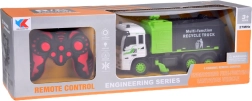 Zábavné RC popelářské auto pro malé milovníky úklidu nabízí dálkové ovládání, světelné efekty a realistické pohyblivé části včetně zdvihacího koše, otevírací zadní klapky a otáčecích kartáčů. Odolné plastové provedení a možnost ručního pohybu bez baterií zaručí spoustu kreativní a poučné zábavy.