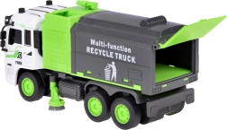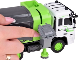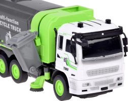 Součástí je zdvihací mechanismus pro koš, otevíratelná zadní klapka a vyklápěcí kontejner pro realistické nakládání a vykládání. Boční otočné kartáče dodávají hře autentičnost a rozvíjejí představivost i jemnou motoriku.