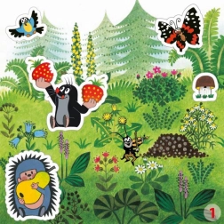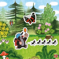 Zábavné album s postavičkou Krtek pro kreativní hraní. Obsahuje 12 lesklých stran a 2 strany opakovaně snímatelných samolepek, se kterými si děti sestavují obrázky, řeší jednoduché úkoly a rozvíjí prostorové vnímání i fantazii.