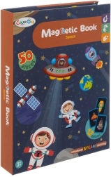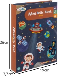 Magnetická kniha Vesmír je inovativní hračkou, která kombinuje zábavu a vzdělávání. Tato hračka ve tvaru knihy umožňuje dětem pomocí 50 magnetických prvků vytvářet vlastní vesmírné scénáře přímo na vnitřní straně obálky, která slouží jako magnetická tabule.
