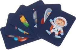 Sada obsahuje 6 oboustranných karet s motivy vesmíru. Karty slouží jako šablona pro vytváření scén s magnetickými dílky.