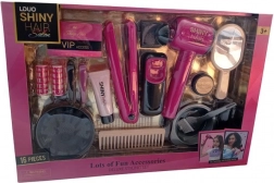 Součástí sady je žehlička na vlasy, praktický hřeben a zrcátko – ideální kombinace pro úpravu účesů během hry.