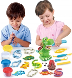 - 4 barevné modelíny, figurka dinosaura, 6 forem, 2 zubní nástroje, pinzeta, nůž, tyčinka