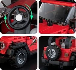 Sestavte si vlastní červené terénní autíčko ze 414 dílků z odolného ABS plastu. Stavebnice pro děti od 8 let nabízí věrné zpracování, samolepky pro doladění detailů a praktickou průhlednou vitrínu pro vystavení hotového modelu. Součástí je obrázkový návod pro snadné skládání.