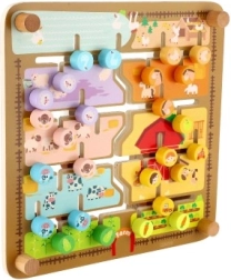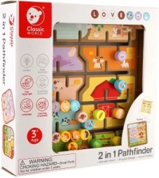 Oboustranný dřevěný labyrint 2 v 1 od značky CLASSIC WORLD spojuje hru a učení: z jedné strany farma se zvířátky, z druhé strany abeceda se zvířátky. Děti trénují jemnou motoriku, logické myšlení a soustředění, když vedou kolíky labyrintem na správná místa. Kvalitní dřevěné provedení, rozměr 30 × 30 cm, vhodné od 3 let.