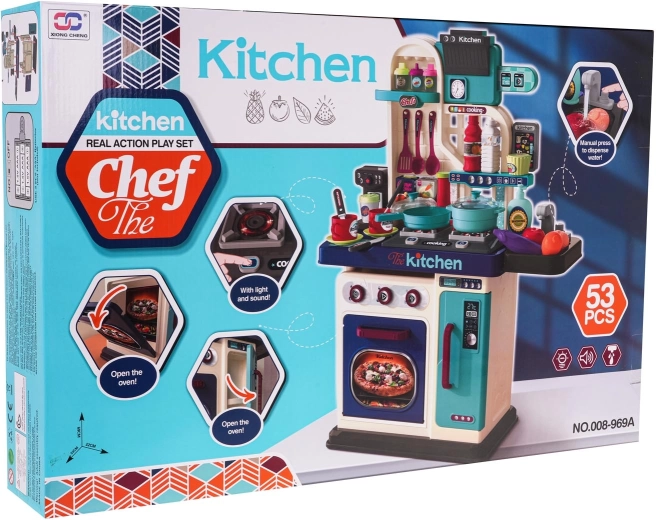 Tato bohatě vybavená kuchyňka promění každý dětský pokoj v kreativní kulinářské studio. Děti si užijí realistické světlo na plotýnce, zvuky smažení a vaření a především kohoutek s tekoucí vodou, který podporuje smyslovou hru i učení hygienických návyků.