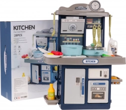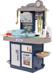 Stylová dětská kuchyňka v modrém provedení přináší světelné a zvukové efekty, tekoucí vodu z kohoutku a bohatou sadu 35 doplňků pro realistické vaření. Pevná konstrukce, interaktivní varná deska s podsvícením a zvuky smažení či vaření, otevírací trouba i lednice podněcují kreativní hru a rozvoj představivosti dětí od 3 let.