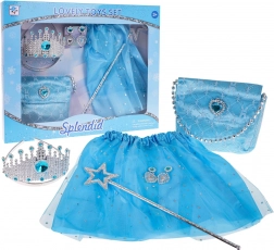 Sada pro malou princeznu nabízí bohatý výběr doplňků, se kterými se každé dítě může stát tím, kým si jen přeje. Kvalitní zpracování s důrazem na detail v krásné modré barvě přináší radost a fantazii vašemu malému pokladu.