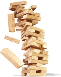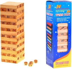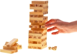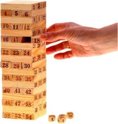 Dřevěné kostičky Jenga je hra dovednostních a strategických her určená pro hráče všech věkových kategorií. Po postavení věže hráči po jednom tahají jednotlivé kostičky a pokládají je na vrchol věže.