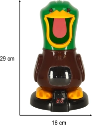 Hra je vyrobena z odolného plastu a je bezpečná pro domácí použití díky měkkým pěnovým kuličkám. Nabíjení je snadné – kuličky se vkládají zepředu do hlavně a výstřel provedete posunem zadní části pistole vpřed. Kachna má kompaktní rozměry, snadno se přenáší a zabaví děti na dlouhé hodiny.