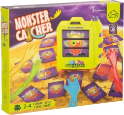 „Zachyť příšerky“ je dynamická hra pro 2–4 hráče od 3 let. Jeden hráč odhalí obrázek příšerky na plastovém „fotoaparátu“ a všichni se snaží co nejrychleji najít shodnou kartu na stole. Kdo ji první rozpozná, musí ji bleskově sebrat barevnou lapkou – a získává bod!