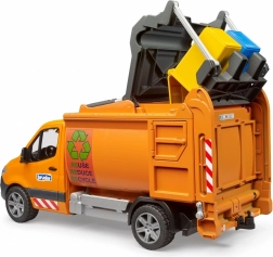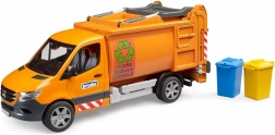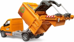 Tento městský popelářský vůz BRUDER věrně napodobuje skutečný MERCEDES-BENZ Sprinter. Díky kompaktním rozměrům se "dostane" všude, kde velká popelářská auta neprojedou. Při vyklápění popelnic se automaticky otevírá střešní klapka a po spuštění se opět zavře. Zadní vyklápěcí dveře umožňují snadné vysypání nákladu.