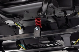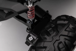 Vozidlo je vybaveno velkými, odolnými pneumatikami z EVA materiálu, které si poradí s každým povrchem. Díky tomu je jízda bezpečná a plynulá jak na silnici, tak v terénu.