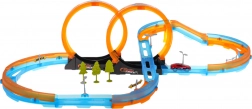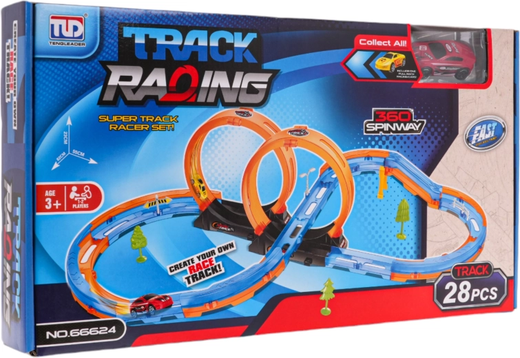 Závodní Dráha Rychlá Smyčka je ideální hračka pro malé závodníky. Tato robustní plastová trať se skládá z 28 dílů, které lze snadno smontovat a nabízí úžasnou zábavu s dvěma smyčkami a závodním autíčkem s pohonem na zpětný chod.