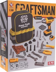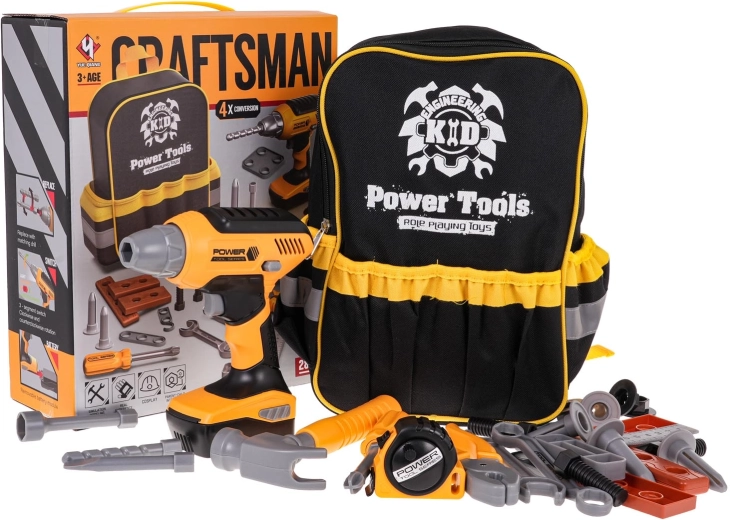 Dětský nářaďový set s batohem obsahuje vše, co malý kutil potřebuje. Bohaté vybavení zahrnuje 28 prvků, včetně měřítka, kladiva, kleští, klíče a mnoha dalšího.