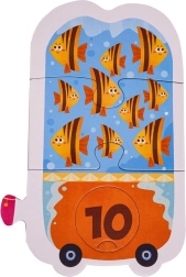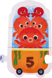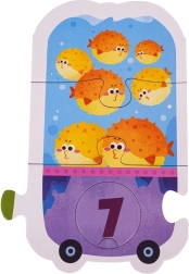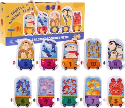Děti skládají vláček z 10 vagónků a ke každému přiřazují správnou číslici i počet zvířátek. Přirozeně si osvojují čísla, množství a rozvíjejí logické myšlení.