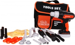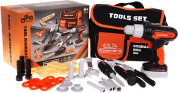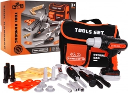 Propracovaná brašna nabízí hlavní komoru na suchý zip, přední kapsičku a úchyty na nástroje. Elektrická vrtačka na 2× AA baterie (součástí) umí utahovat i povolovat, má výměnné bity a vyjímatelný akumulátor, takže si děti užijí autentický zážitek z opravy a montáže.