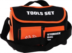Odolná úložná taška s rukojetí a ramenním popruhem. Hlavní komora na suchý zip, přední kapsa a vnitřní přepážky pro přehledné uložení nástrojů.