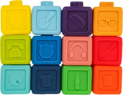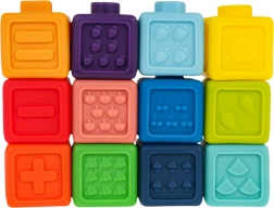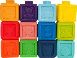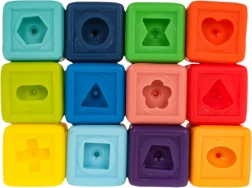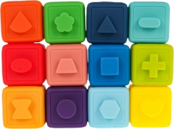 Tato všestranná sada gumových kostek je ideální od prvních dnů života. Díky měkkému, netoxickému materiálu jsou kostky bezpečné pro kousání i mačkání a současně rozvíjejí smyslové vnímání. Děti se přirozeně učí rozlišovat barvy a tvary, trénují úchop a zlepšují koordinaci ruka–oko.