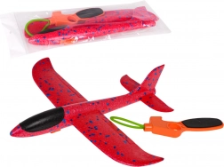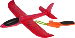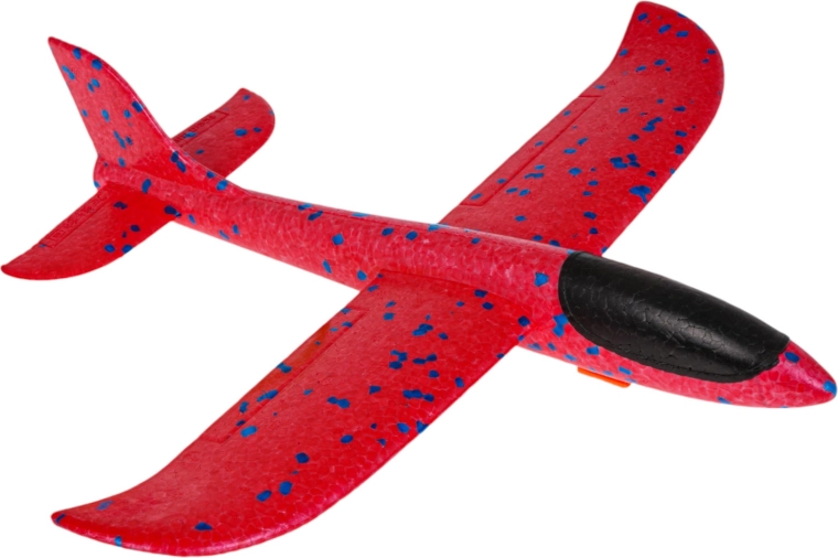 Tento červený pěnový letoun je navržen pro stabilní a dlouhé lety. Stačí zachytit gumičku praku za spodní prvek letadla, natáhnout a vypustit – o zábavu pod širým nebem je postaráno. Odolný materiál snese pády i časté používání.