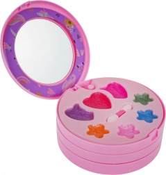 Součástí je zrcátko a dvoustranné aplikátory, aby děti mohly pohodlně nanášet stíny, lesky i třpytky.