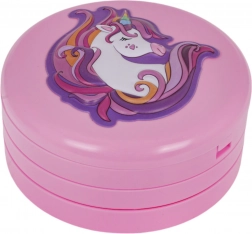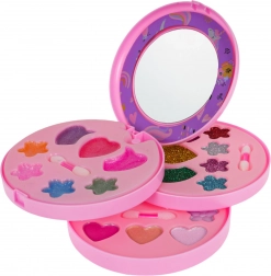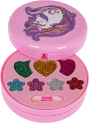 Rozkládací růžová šperkovnice s motivem jednorožce ukrývá barevný svět fantazie: květinky, srdíčka a hvězdičky plné stínů, balzámů a třpytek. Díky integrovanému zrcátku a přiloženým aplikátorům mohou děti bezpečně a pohodlně objevovat svět líčení.