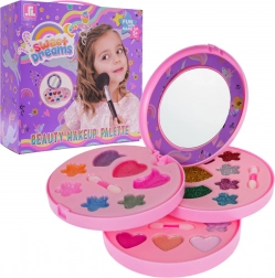 Kompaktní kulatá krabička se otevírá do více pater s pestrými barvami a třpytkami, ideální na cestování i domácí hraní.