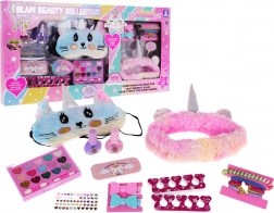 Součástí je paletka 15 očních stínů, dětské laky na nehty, štětečky, gumičky, sponky a pružinka do vlasů, ale také jednorožčí čelenka a maska na oči. Zábavná kosmetická sada povzbuzuje tvořivost, rozvíjí jemnou motoriku a buduje vkus a cit pro barvy.