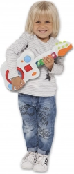 Světelné efekty dodávají zábavnosti a energii při každém hraní. Napájení zajišťují 3 R6 / AA 1,5V baterie, které nejsou součástí balení. Kytara je vhodná pro děti od 1,5 roku a má rozměry 17 x 40 x 5 cm.