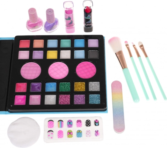 Objevte pestrý svět barev se sadou Sněžná princezna – ideální pro malé milovnice líčení a kreativní hry. V rozkládacím boxu se zrcátkem najdete vše od očních stínů a lesků, přes laky a samolepící nehtíky až po štětce a pomůcky. Všechny produkty jsou jemné k pokožce a snadno se odličují.