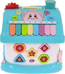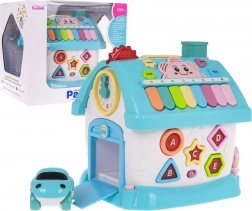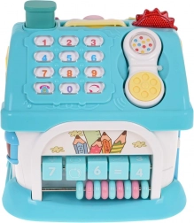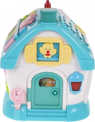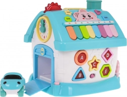 Interaktivní domeček je vyroben z kvalitního plastu v atraktivních barvách a je navržen tak, aby děti zábavnou formou rozvíjely poznávání tvarů, písmen a čísel. Každá ze čtyř stěn nabízí jiné aktivity – od hodin se skutečně pohyblivými ručičkami a garážovými dveřmi, přes stěnu s abecedou a podsvícenými tvary, až po vstupní dveře na klíček se světlem a zvuky. Součástí je i malé autíčko pro ještě více herních scénářů.