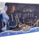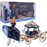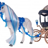 Tento kouzelný set promění každý dětský pokoj v říši snů. Panenka v krásných modrých plesových šatech má pohyblivé ruce, nohy i hlavu a dlouhé vlasy, které lze česat. Koník se elegantně pohybuje vpřed a vydává realistické zvuky, zatímco kočár září blikajícími modro‑červenými světly – perfektní kombinace pro působivou pohádkovou scénu.