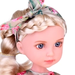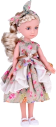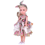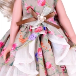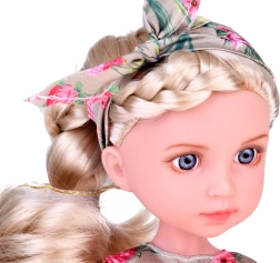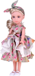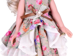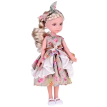 Tato okouzlující panenka je perfektní volbou pro každou malou milovnici módy. S dlouhými, blond vlasy spletenými do elegantního copu, je oblečena do elegantních květinových šatů zdobených volány, které doplňuje květinová čelenka a bílé střevíčky. Celkový styl je prostě úchvatný!