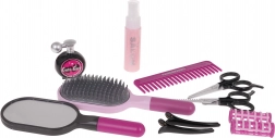 Nůžky, efilační nůžky, hřeben, kartáč, zrcátko, natáčky, sponky, rozprašovač i stojan – vše pro kreativní styling a uklizené hraní.
