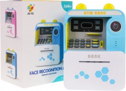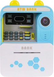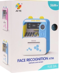 Interaktivní dětský bankomat – pokladnička s imitací rozpoznávání obličeje učí děti počítání, hodnotu peněz a spoření. Má bezpečné zaoblené hrany, digitální displej, zvukové efekty a anglicky mluvící hlas. Aktivuje se vložením imitace platební karty a nabízí vklad, výběr, kontrolu zůstatku i změnu PIN. Pro děti od 3 let.