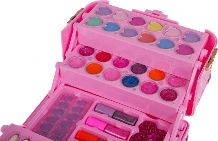 - Bohatá výbava včetně stínů, lesků, rtěnky, pudrů, laků a doplňků.