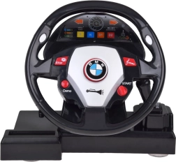 Licencované RC auto BMW v měřítku 1:24 potěší věrnými detaily karoserie, zadním náhonem a světly, která svítí při jízdě vpřed i vzad. Součástí je volant s funkcemi START/STOP, DEMO a MUSIC, který simuluje skutečné řízení včetně zvuků blinkrů při otáčení. Díky přísavkám drží pevně na stole a výběr převodů (N, D1, D2, R) dává jízdě ještě realističtější rozměr.