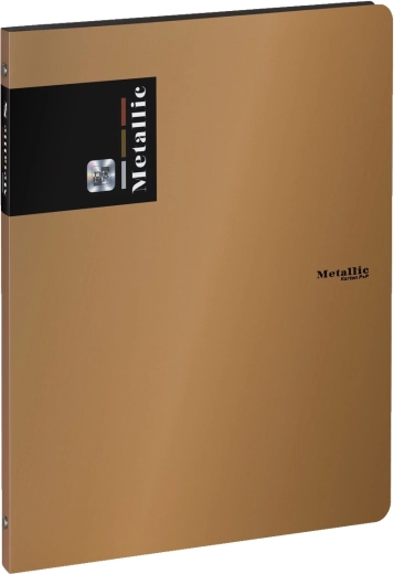 Polypropylenový pořadač v metalickém měděném odstínu s 4kroužkovou mechanikou, ideální pro organizaci vašich dokumentů.