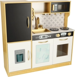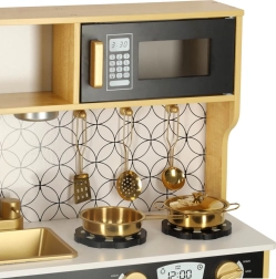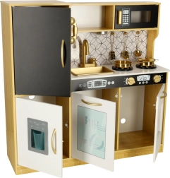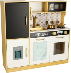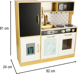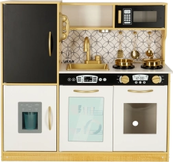 Dřevěná kuchyňka značky LULILO je skvělým edukačním nástrojem, který podporuje rozvoj dětské představivosti a manuálních dovedností. Kuchyňka je vybavena mnoha funkčními spotřebiči, jako jsou chladnička s kostkovačem ledu, trouba, myčka, a mikrovlnka, což ji činí oblíbeným místem pro mazlíčkování a pořádání rodičů a panenek. Díky efektivnímu podsvícení vytváří autentickou atmosféru.