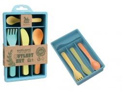 Kvalitní kuchyňský příborník z bioplastu obsahuje kompletní sadu příborů pro čtyři osoby, což z něj činí ideální volbu pro ekologicky uvědomělé zákazníky.