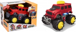 Terénní auto s efekty 15,5 cm přináší spoustu zábavy díky světelným, zvukovým i pohybovým efektům na stisk tlačítek. Ovládání je snadné přes tlačítko na střeše a postranní tlačítka (zvuk motoru, hudba, jízda dopředu i dozadu) a díky 3× AAA bateriím v balení je připraveno ihned vyrazit.