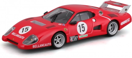 Tento detailně zpracovaný model FERRARI 512 BB (II série) 1981 v měřítku 1:43 pochází z řady Bburago Racing. Věrně reprodukuje agresivní siluetu, velké zadní křídlo i ikonické nápisy BELLANCAUTO. Kovové tělo s kvalitním lakem a ostrými liniemi dodává modelu realistický vzhled i na kratší vzdálenost.